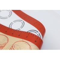 亞勝豪硅膠烤墊源自法國先進制做工藝,墊具有耐高溫,抗老化,持久耐用,可以重復使用,造型新穎,質地柔軟 ,款式多變,脫模容易,清洗方便等特點。 使用時無需抹油,直接墊在烤盤上當烤盤墊使用,可以省下油紙和錫紙了,適合烘烤面包、披薩、餅干、馬卡龍等中西式面點食品。亞勝豪硅膠烤墊,可印各式標尺刻度和圓環形圖案,使搟派皮,披薩皮,分割蛋糕相當方便。不用時可清洗干凈卷起來收藏!非常方便!