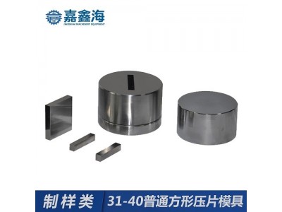 嘉鑫海31-40mm方形壓片模具采用日本 高速工具鋼 ASSAB+17,材質(zhì)好,硬度高,不變形,適用于電池、陶瓷、催化、金屬、材料、研發(fā)制樣等行業(yè),可根據(jù)客戶需求定制不同尺寸的壓片模具。