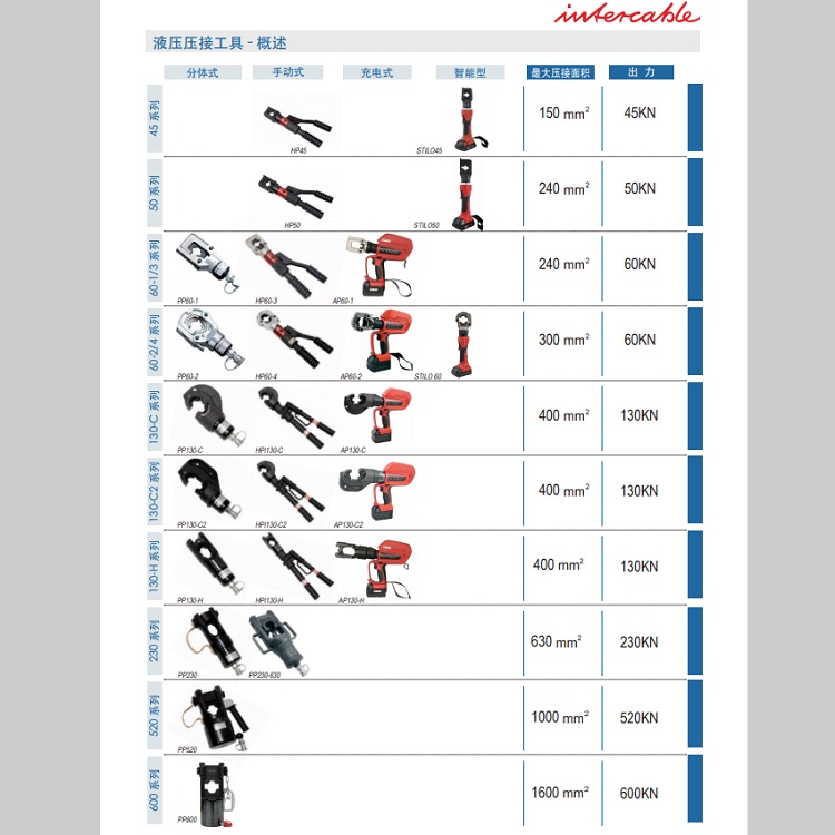 手動液壓鉗:HP45、HP50、HP60-3、HP60-4、HPI130-C、HPI130-C2、HPI130-H