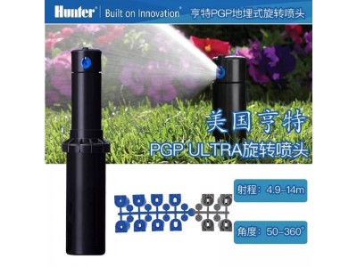 亨特PGP噴頭 旋轉機構,噴頭的旋轉速度不隨噴嘴的大小和壓力的變化而改變 頂部橡膠保護蓋,防止污物進入和機械或人踏對噴頭的損壞 低壓噴灑性能好 內置大過濾網,有效防止噴嘴的堵塞 可靠的齒輪驅動機構 安裝和調節簡便 噴嘴型號選擇多,適應范圍廣 進口尺寸:?" 噴頭長度:PGS:19cm PGP:19cm PGH:43cm