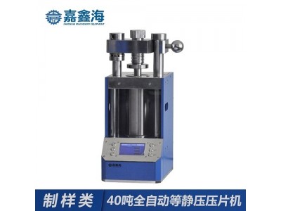 嘉鑫海40噸全自動等靜壓壓片機可以程序控制,自動加壓、自動補壓、定時泄壓,液晶大屏顯示,可自動換算樣品所受實時實際壓強,上板搖臂結構,操作更簡單方便,機體鋼板防護并配有有機玻璃防護門,安全性更強。