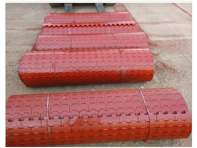 新型甲帶,采用 16MN 合金或45#鋼,其結(jié)構(gòu)編織密度大、耐磨、耐沖擊、耐穿透能力強(qiáng)、彈性好等特點(diǎn),具有防跑偏, 防打滑功能;克服了老式甲帶閣層易夾煤而導(dǎo)致甲帶與皮帶脫離,出現(xiàn)打滑、斷帶等現(xiàn)象,導(dǎo)致維護(hù)勞動(dòng)強(qiáng)度大、成本高;內(nèi)襯膠帶采用防跑偏結(jié)構(gòu),在環(huán)形 帶中間加鑄一道梯形筋,具有防跑偏的強(qiáng)效功能,大大克服了以往皮帶跑偏的難題。使用專(zhuān)利新型甲片專(zhuān)利號(hào)組合和成的甲帶,提高了給料機(jī)低砸放斷裂重載啟動(dòng)等性能,分散了膠帶所受的沖擊力和撕裂力,避免了因大塊物料下落沖擊而損壞膠帶,減少了維護(hù)量,延長(zhǎng)了膠帶的使用壽命實(shí)現(xiàn)了甲帶與膠帶的同步運(yùn)行,從而延長(zhǎng)了甲帶式給料機(jī)的使用壽命。