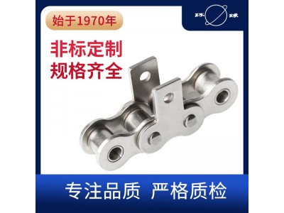 標準不銹鋼鏈條尺寸符合ISO 606等標準。該鏈條采用質優的奧氏體型、馬氏體型不銹鋼材料,新進的加工工藝、高效的工藝裝備,產品具有耐腐蝕、耐高低溫、清潔等特點,有兩類抗拉強度指標的產品可供用戶選擇。