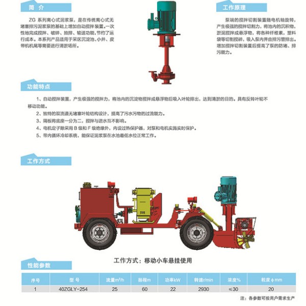 天科ZG系列礦用渣漿泵,是在傳統離心式無堵塞排污泥漿泵的基礎上增加自動攪拌裝置。完成攪拌、破碎、抽排、輸送功能,節約了運行成本。本系列產品適用于采區沉淀池、小井、皮帶機機尾等需要進行清淤場所。