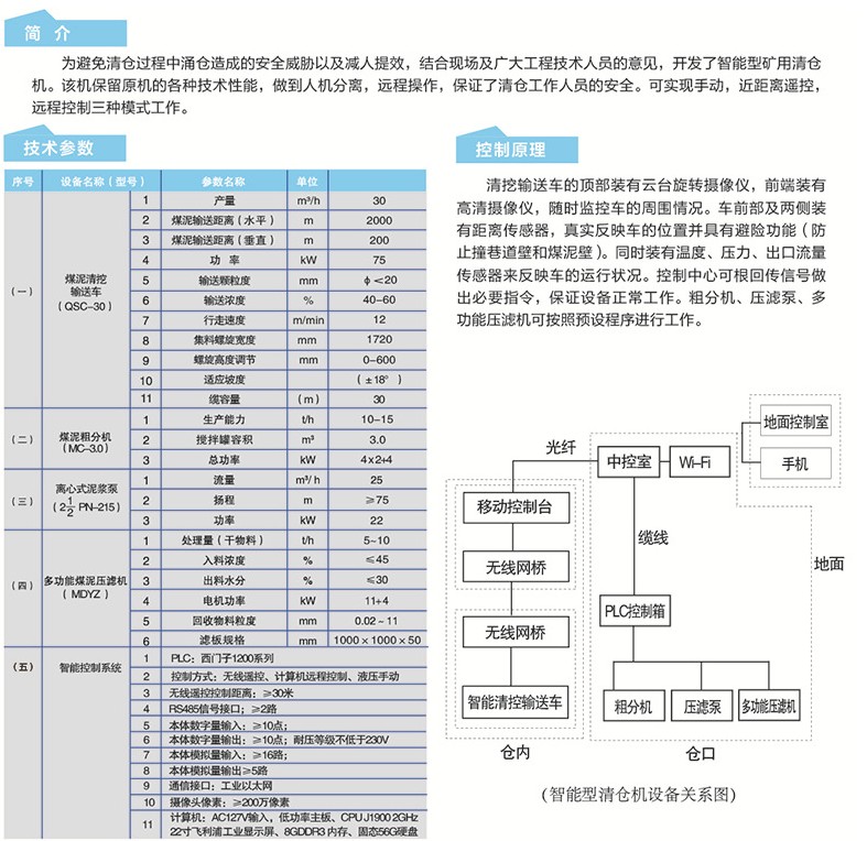 為避免涌倉造成的威脅以及減人提效,開發了智能型煤礦水倉自動清挖設備。該機保留原機的各種技術性能,做到人機分離,遠程操作。可實現手動,近距離遙控,遠程控制三種模式工作。