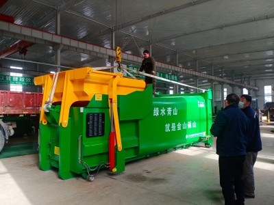 1、垃圾收集車卸料后,設備進行壓縮作業(yè)。