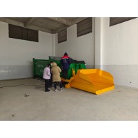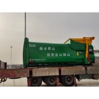 2、設備從地坑升起后與自卸式垃圾車對接,并將垃圾推入自卸式垃圾車內(nèi)。