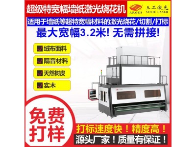該設備是利用激光的熱效應,無接觸的對面料表面進行燒灼刻蝕,并形成凸凹有致的花型圖案。適用于窗簾、墻紙等超特寬幅材料的激光加工,無需拼接,一次加工成型,效果好,最大加工寬幅可達3米2。