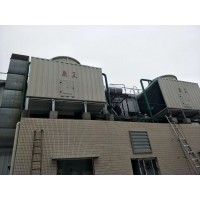 本系列橫流式方玻璃鋼冷卻塔采用兩側進風,靠頂部的風機,使空氣輕由塔兩側的填料,與熱水進行介質交換,溫熱空氣再排向塔外。填料采用兩面有凸點的點波片,通過安裝頭使點波片粘結成整體,以提高剛性,兩面的凸點還可避免直接滴水,因此提高了水膜形成能力,填料尾部設有收水措施。