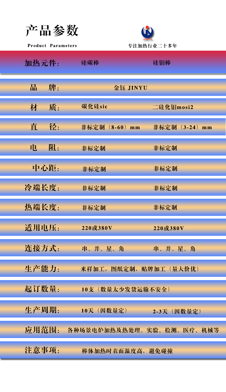 U型硅鉬棒是由一支U型發熱端和兩支冷端經過高溫焊接而成,一般使用溫度在1700度以內,硅鉬棒不適宜在400度-800度低溫環境下使用,硅鉬棒一般使用溫度在1400度以上,1400度一些使用硅碳棒。硅鉬棒材料性質決定使用情況,硅鉬棒主要原材料是鉬粉,硅鉬棒電阻可以忽略不計,相當于導體,所以需要配備變壓器一起使用。