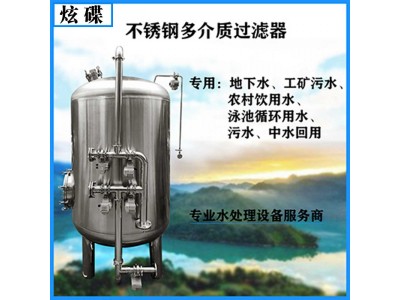 多介質過濾器的介質是石英砂,無煙煤等。功能是濾除懸浮物機械雜質、有機物等,降低水的渾濁度。活性碳過濾器介質為活性炭,目的是吸附、水中的色素、有機物、余氯、膠體等。錳砂過濾器的介質為錳砂,主要去水中的二價鐵離子。