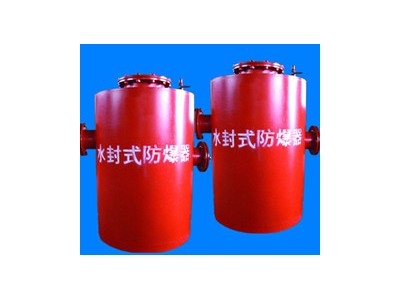 FBQ型系列水封式防爆器是安裝在抽放瓦斯泵吸氣側(cè)和排氣端的管路上,靠防爆器底部的水封保護(hù)井上井下、抽放泵站設(shè)備及用戶安全;當(dāng)瓦斯抽放時(shí)氣體經(jīng)由進(jìn)氣彎管進(jìn)入水中,然后從水中析出,經(jīng)出氣彎管排除,由水封將進(jìn)、出氣管路隔離;當(dāng)一端發(fā)生爆炸時(shí),在水封的隔離下不能形成連貫爆炸,此時(shí)泄壓裝置的膠板被沖開(kāi)泄壓,保護(hù)了井上井下、抽放泵站設(shè)備及用戶安全。