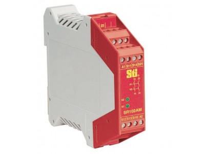 符合EN60204-1, EN954-1與VDE 0113-1標準要求, UL和C-UL列入,BG批準認可;電源要求——SR102A可接受24V交/直流電,115V或230V交流電;輸入——SR102AM接受單N/C或雙N/C輸入或從一個光幕接受雙輸入(見互鎖應用舉例);輸出——SR102AM有2個N/O輸出把能量傳送到電力接觸器繞組;提供一個SR102AM上連接S11,S12與S21的N/C環路和外部裝置監測(EDM);SR102AM提供受監測手動和自動/手動兩種復位模式