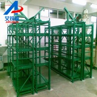 模具架主要用于存放各類模具物品,一般可分為標準型模具架和重型模具架。頂部可配置移動式葫蘆小行車,以方便起吊模具。